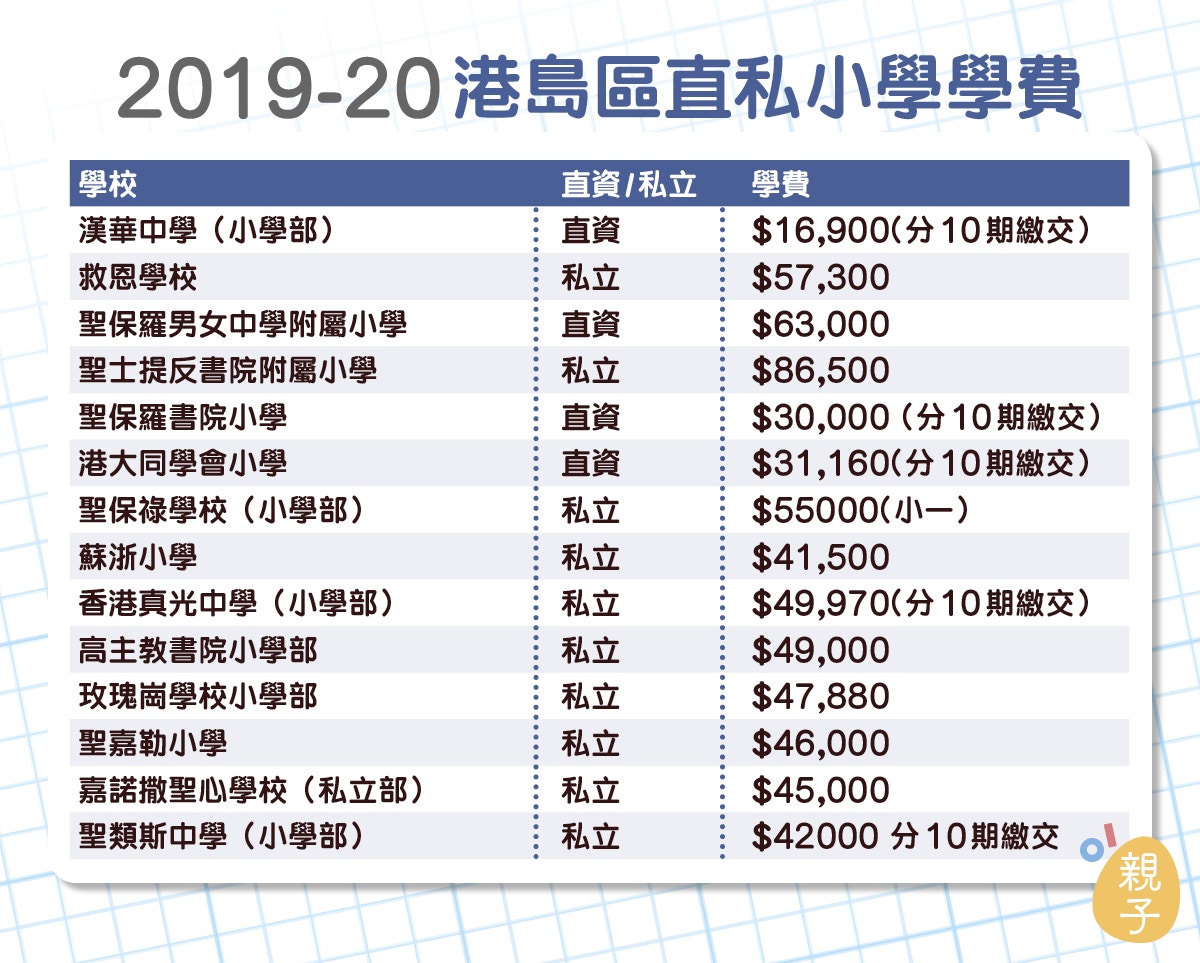 小學概覽2019 全港直私小學學費表男拔附小英華維持學費不變 香港01 親子